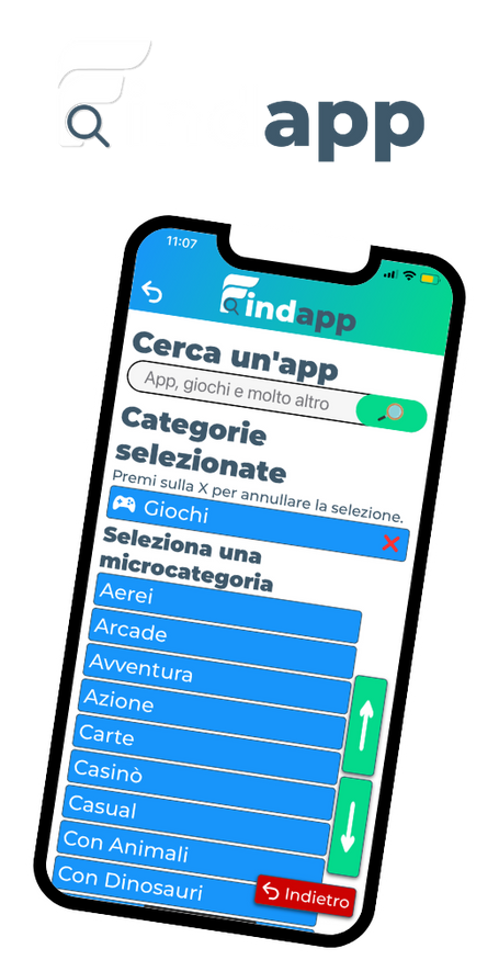 Scegli una delle macrocategorie di app.